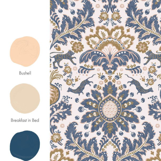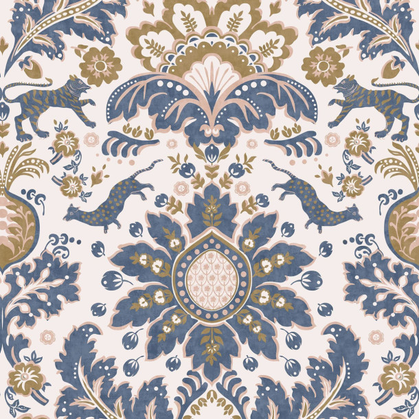 Animal Damask Cream/Blue/Gold Wallpaper, Joules