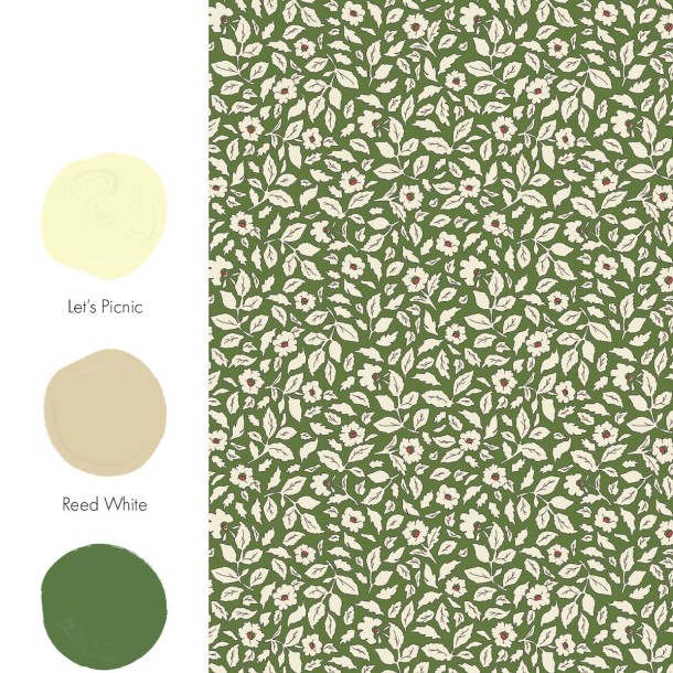Ditsy Floral Green Wallpaper, Joules
