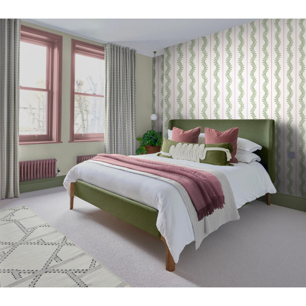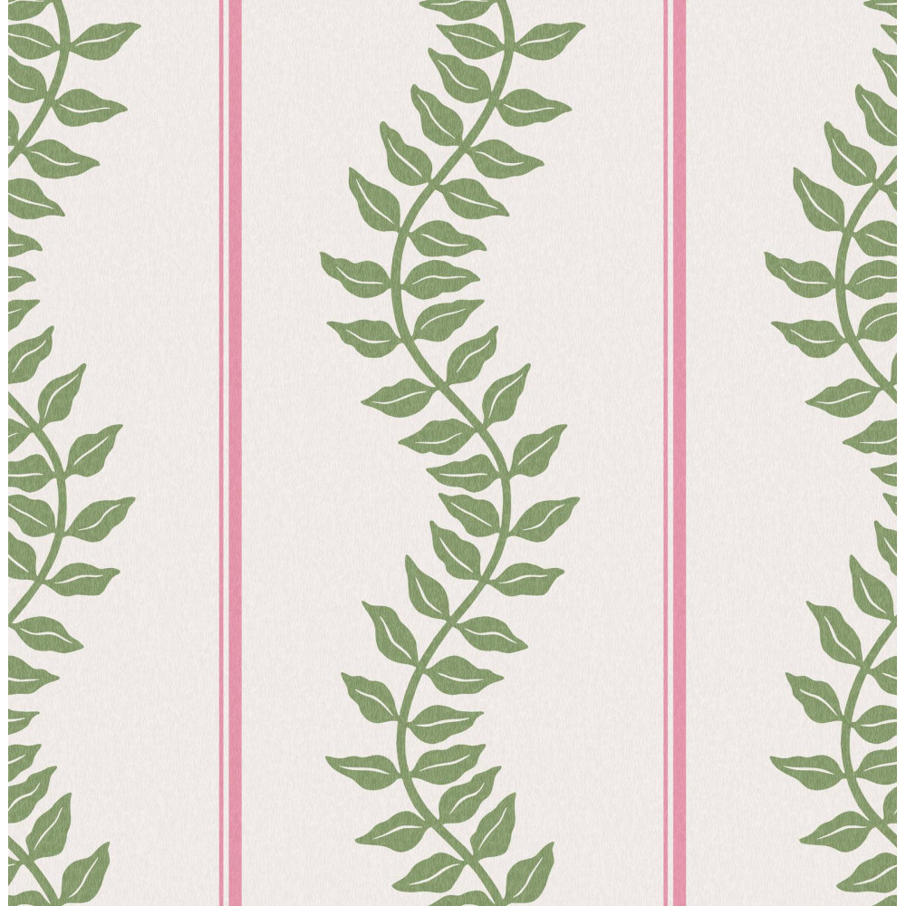 Laurel Leaf Stripe Pink & Green Wallpaper, Graham & Brown