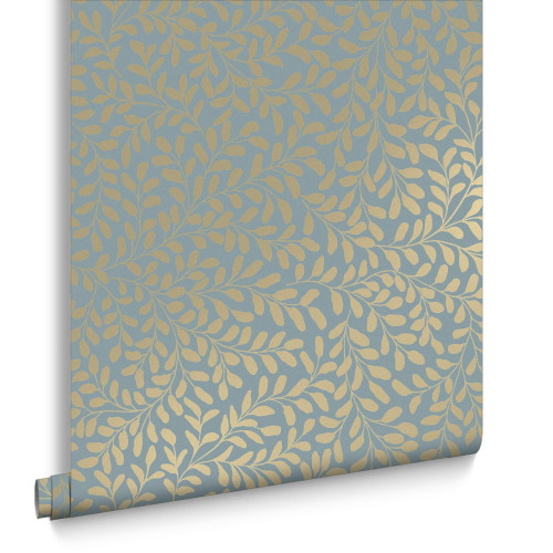 Gilded Leaf Sky Blue & Pale Gold Wallpaper, Graham & Brown
