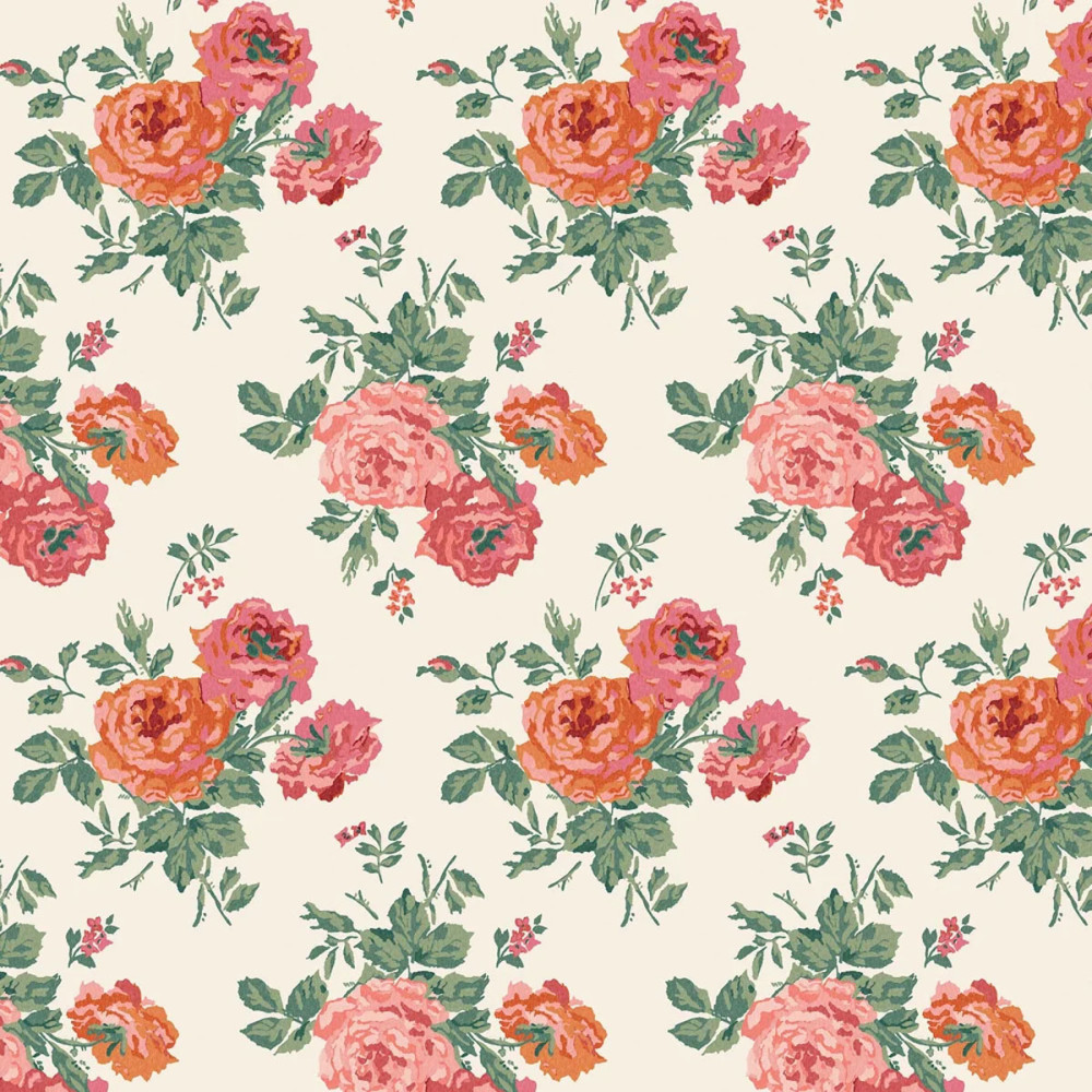 Archive Rose Pink Blooms Pink Wallpaper 10m features Cath Kidston’s signature rose motif in a painterly style, perfect for adding vintage charm and floral elegance to any room.