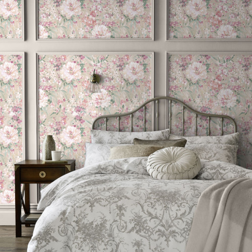 Mayville Plaster Pink Wallpaper 10 meters, Laura Ashley