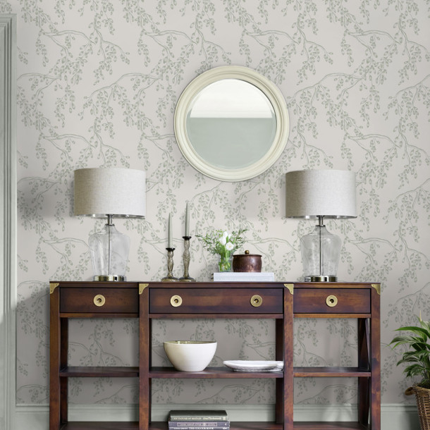Rainham Willow Sage Wallpaper 10 meters, Laura Ashley