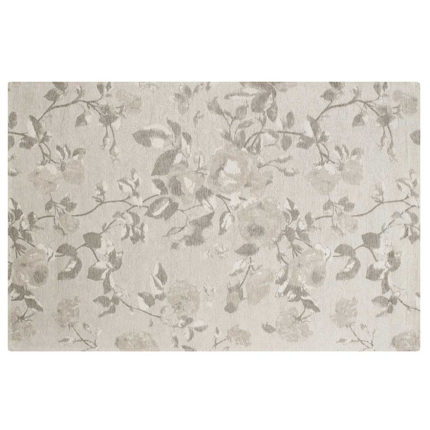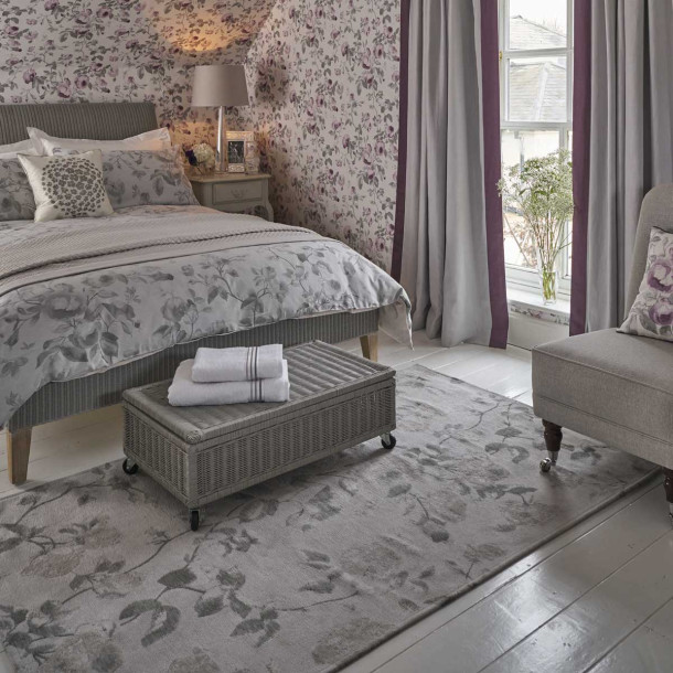 Alfombra estampada con rosas Grace, de mezcla de algodón y poliéster, de estilo Vintage en gris, texturizada.