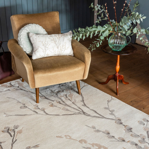 La Alfombra de lana Pussy Willow tiene un diseño limpio y fresco de ramitas de sauce aporta un toque natural al interior del hogar.