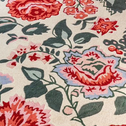 La Alfombra de lana Wendling Floral es un diseño atemporal que aporta elegancia a cualquier espacio, con una impresión a gran escala de rosas estilizadas, claveles y crisantemos.