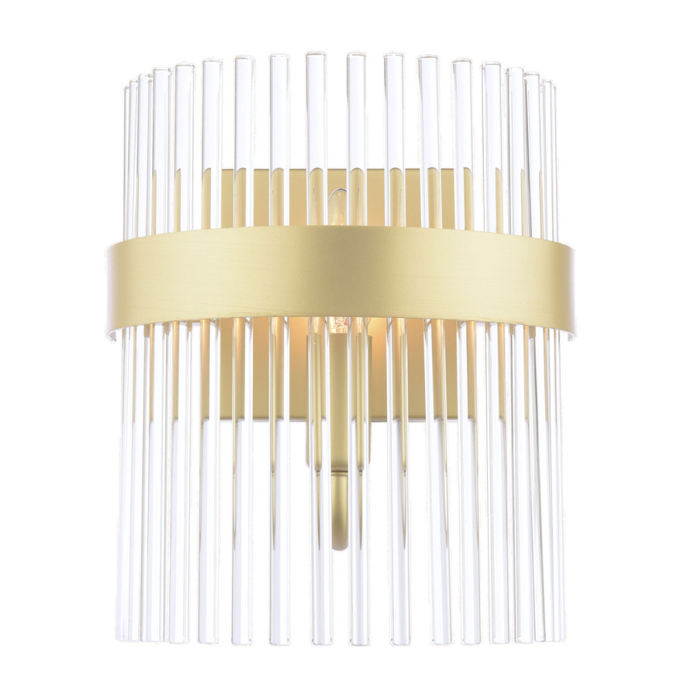 Aplique de pared con varillas de cristal y base en latón, mezcla de estilo clásico y moderno. Ideal para entradas y pasillos.