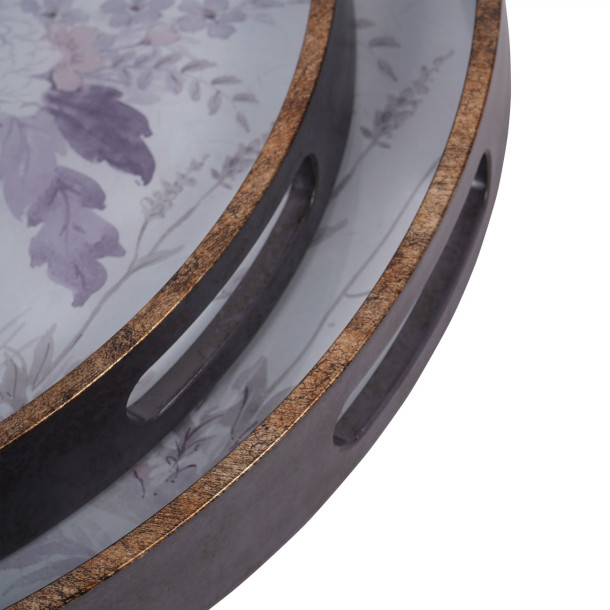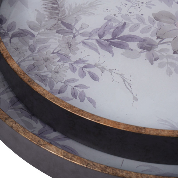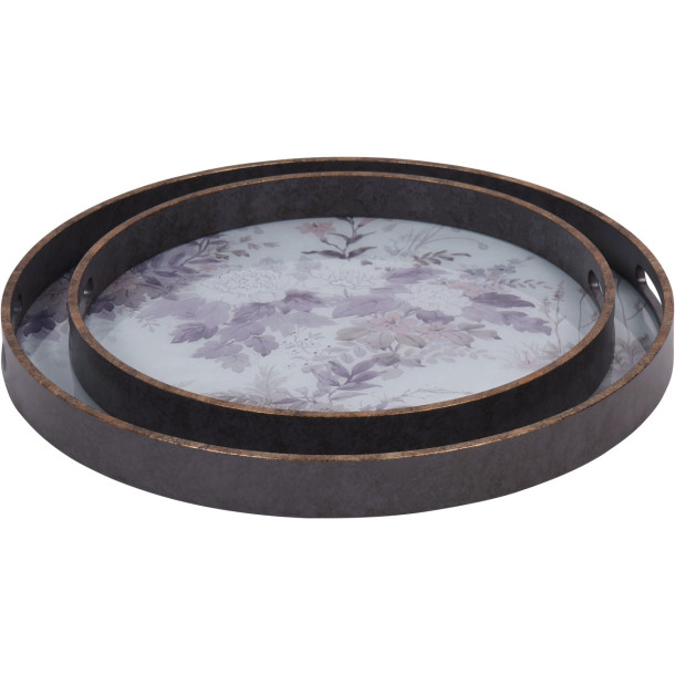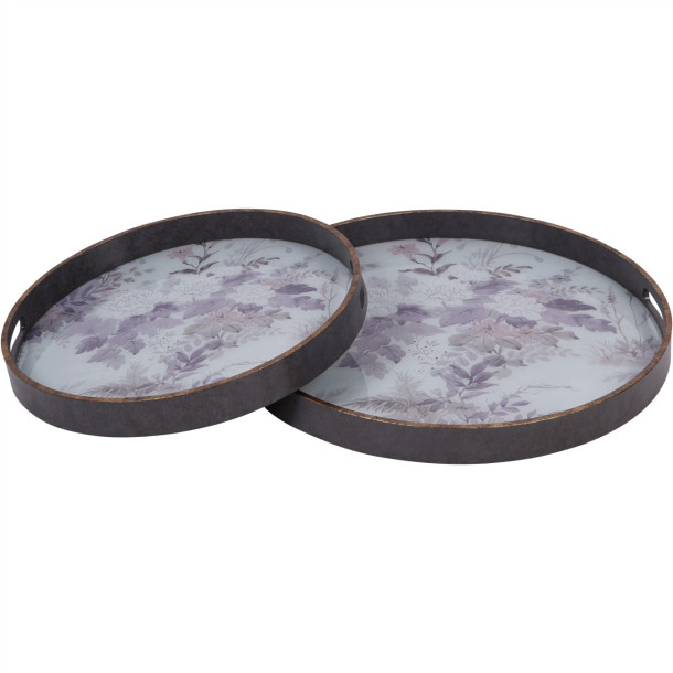 Juego de 2 bandejas con el encantador estampado Linlithgow. Este juego muestra delicadas flores y un elegante follaje. Perfecto para servir bebidas, aperitivos o para exhibir decoración.