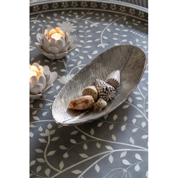 Realza tu decoración con el bol ovalado grande Albury Leaf de Laura Ashley, una hermosa fusión de diseño inspirado en la naturaleza y estilo moderno. Elaborado en aluminio plateado, este bol ovalado presenta intrincados detalles de hojas que aportan textura y encanto a tu hogar. Perfecto para exhibir frutas, objetos decorativos o como pieza central, este bol combina practicidad y elegancia sin esfuerzo.