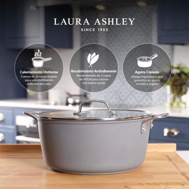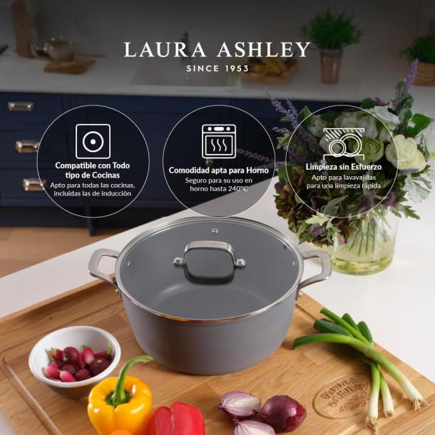 Elegante Complemento para la Cocina: Sorprenda a su familia e invitados con la cacerola con tapa Laura Ashley, que cuenta con un diseño elegante y un acabado refinado. Perfecta para servir directamente de la cocina a la mesa.