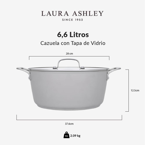 Cazuela de 28 cm con tapa de vidrio Gris Claro, Laura Ashley