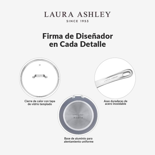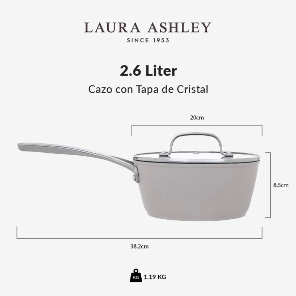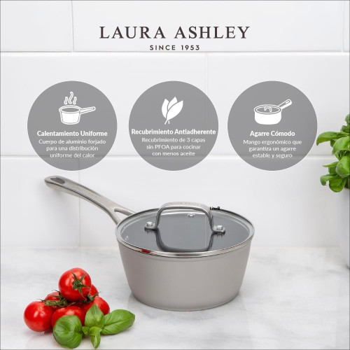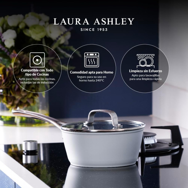 Complemento Elegante para su Cocina: El acabado excepcional y la estética refinada de esta cazo 20 cm Laura Ashley con tapa la convierten en una pieza destacada para servir directamente de la cocina a la mesa, impresionando a familiares e invitados.