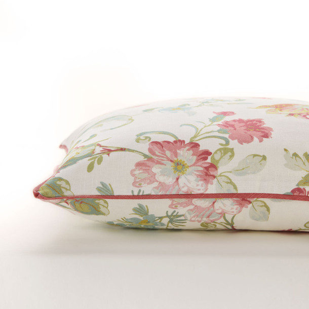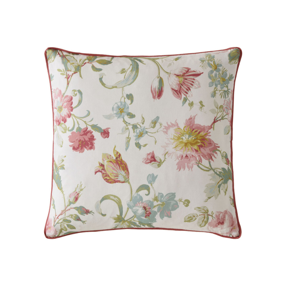Cojín Rosalind con diseño de Flores Radiantes, en tonos Rojo Arándano. Mide 45cm x 45cm. De Laura Ashley