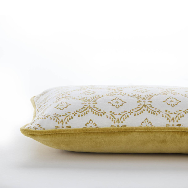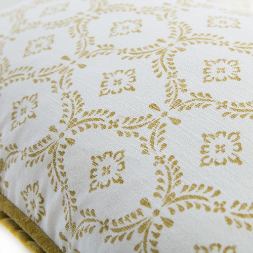 Cojín Norton con diseño de Medallones Clásicos, en tonos Amarillo Ocre. Mide 30cm x 50cm. De Laura Ashley