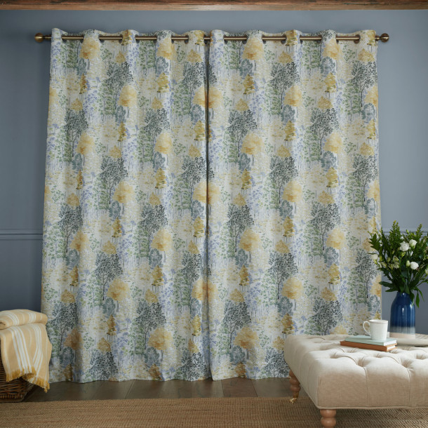 Cortinas Confeccionadas Bernwood, con diseño de Bosque Sereno, en color Amarillo Ocre. Cabecera Tipo Ojales y forro Sencillo. Varias medidas disponibles. De Laura Ashley.