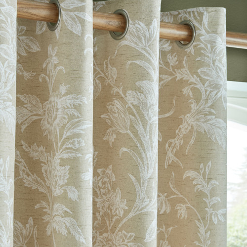 Cortinas con diseño floral en tonos caramelo, perfectas para dar un aire romántico y acogedor a tu hogar. Forradas y listas para colgar con ollaos.