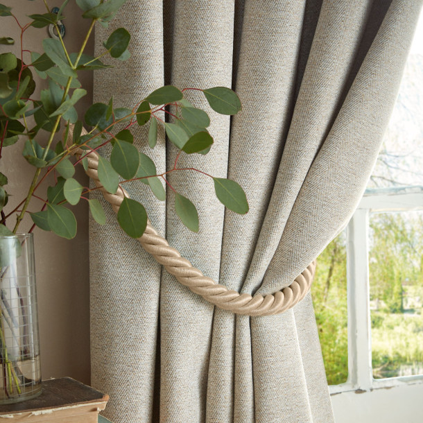 Cortinas Confeccionadas Milbourne Herringbone Trufa Natural, Laura Ashley