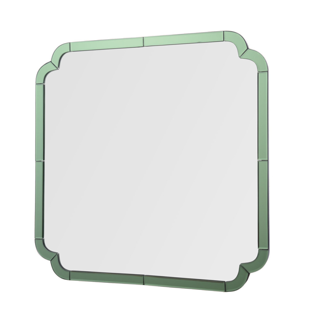 Espejo cuadrado con borde de cristal verde, mezcla de estilo moderno y aire retro. Perfecto para dar personalidad a cualquier rincón.
