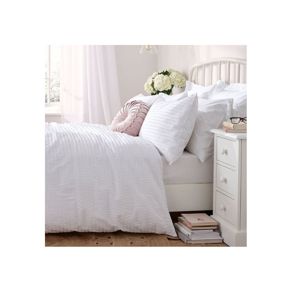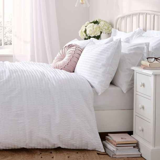 Diseño tetxturizado de rayas horizontales en blanco para un conjunto de funda nórdica perfecto para tu cama.