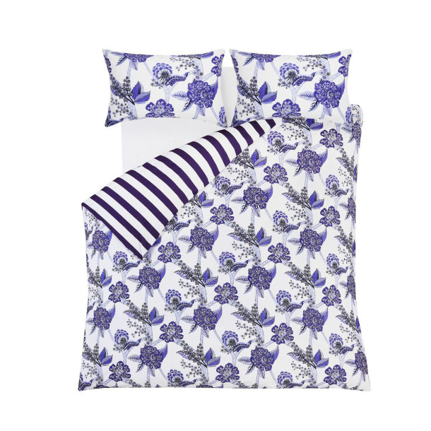 Flores trepadoras en azul porcelana se combinan con rayas modernas en este diseño llamativo. Impreso sobre percal de algodón 100% de 180 hilos, combina perfectamente con las flores mini a juego de la colección hogar de Cath Kidston.