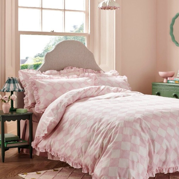 El juego de cama Hand Painted Diamond destaca por su delicado estampado de rombos pintados a mano en tonos pastel. Hecho en algodón 100%, aporta serenidad y el encanto atemporal de Cath Kidston.