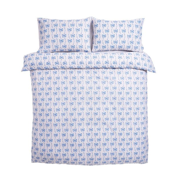 El set Ribbon Bow presenta un delicado diseño de lazos en azul aciano. Elegante y femenino, confeccionado en algodón natural para ofrecer confort y estilo clásico con un toque moderno.