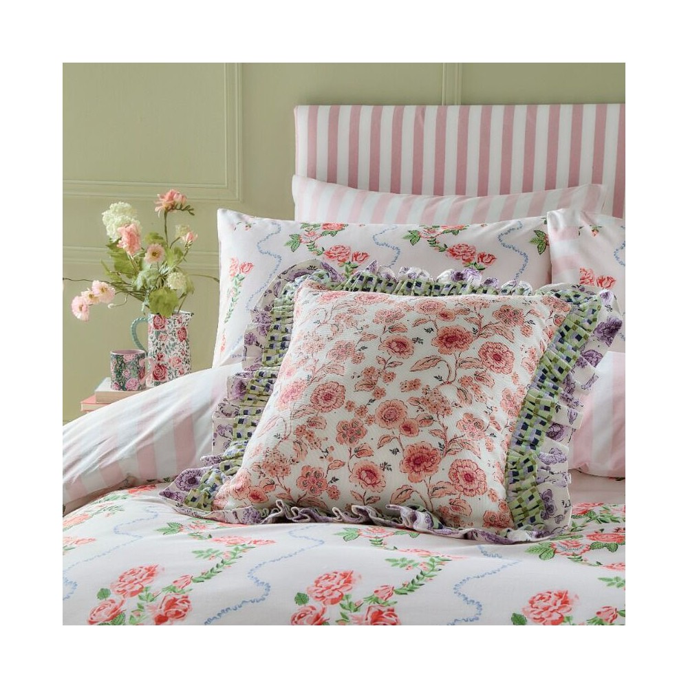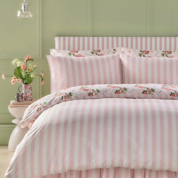 El juego de cama Rose Flutter combina rosas pintadas a mano y rayas en rosa empolvado, coral y verde. Hecho en algodón percal, aporta un estilo clásico renovado con la dulzura característica de Cath Kidston.
