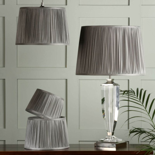 <p>Laura Ashley nos trae esta preciosa pantalla de seda, de estilo tradicional, con un delicado diseño plisado para aportar calidez a la decoración de tu hogar.</p><p>En seda gris carbón, está disponible en varios diámetros.</p>