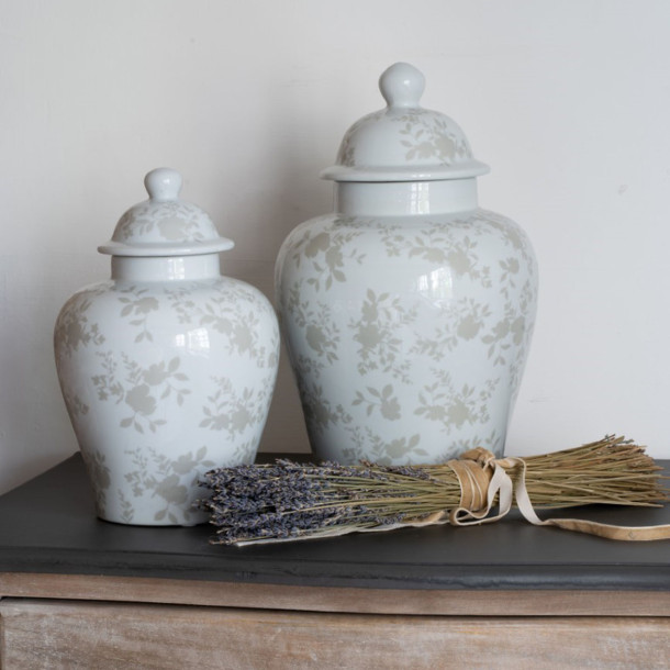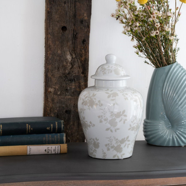 Tarro de Jengibre Westbourne, elaborado en porcelana esmaltada, luce el elegante estampado Westbourne, con una delicada silueta floral de rosas y tallos frondosos. Tamaño pequeño: 28 cm