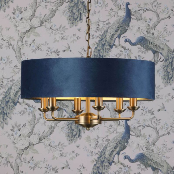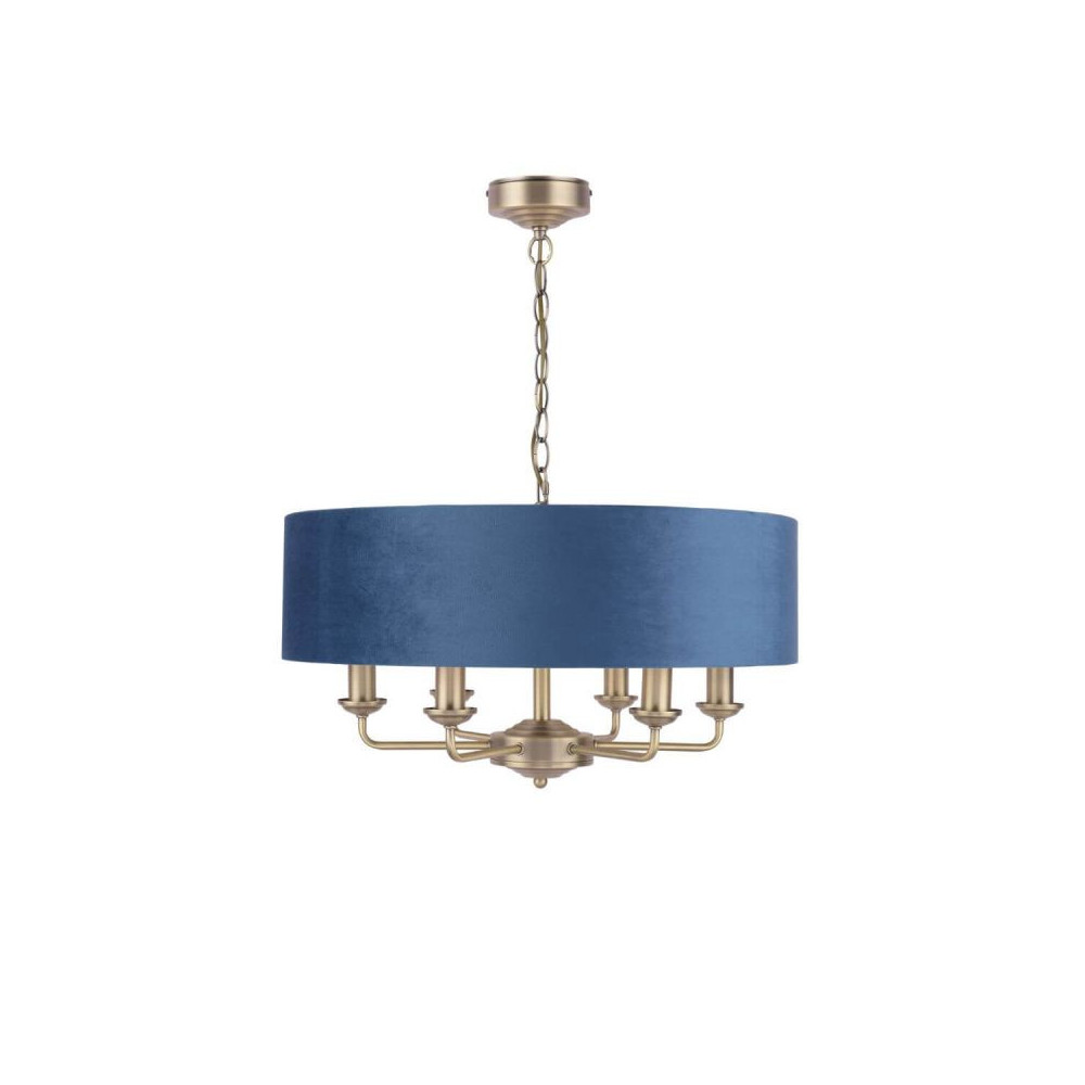 Lámpara de techo Sorrento de 6 luces, color latón antiguo mate y pantalla azul, Laura Ashley