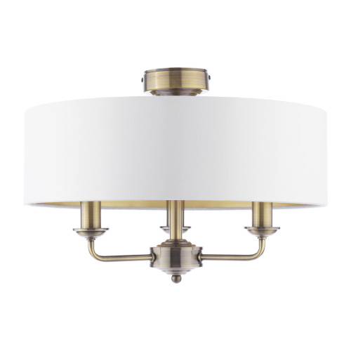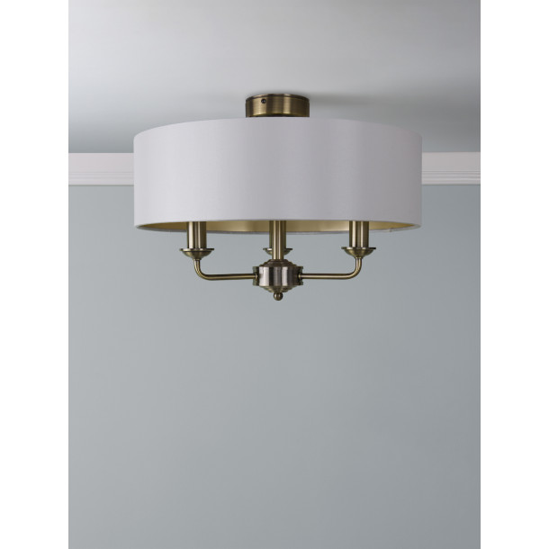 Lámpara de techo Plafón Sorrento de 3 luces, latón antiguo y pantalla marfil, Laura Ashley