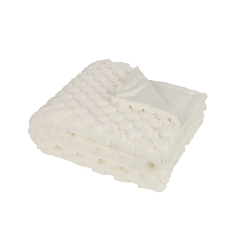 Manta Koochikoo con diseño de Piel de Conejo, tacto peluche, en tonos Marfil. Mide 130 X 170 cm. De Malini.