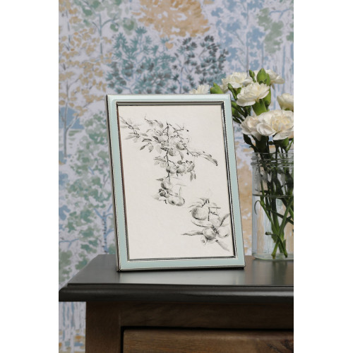 Marco de fotos Laura Ashley de 13 x 18 cm en azul pálido y plateado. Perfecto para mesas de noche o estantes. Ideal para enmarcar tus fotos favoritas con estilo y elegancia.
