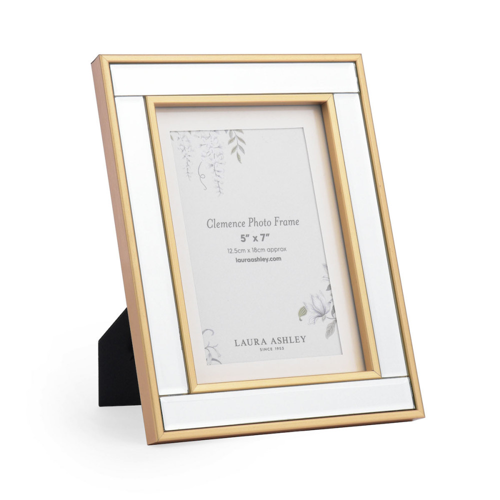 Marco de fotos Clemence de 13 x 18 cm de Laura Ashley. Combinando un elegante espejo con toques de pan de oro. Perfecto para consolas de sala de estar o cómodas de dormitorio.