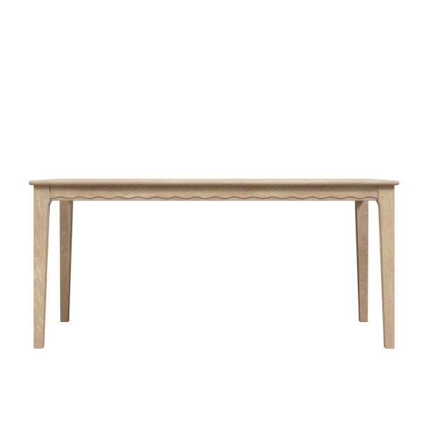 Mesa de comedor de roble, rectangular, realizada en roble natural de acabado lavado, con original detalle labrado en forma de ondas.