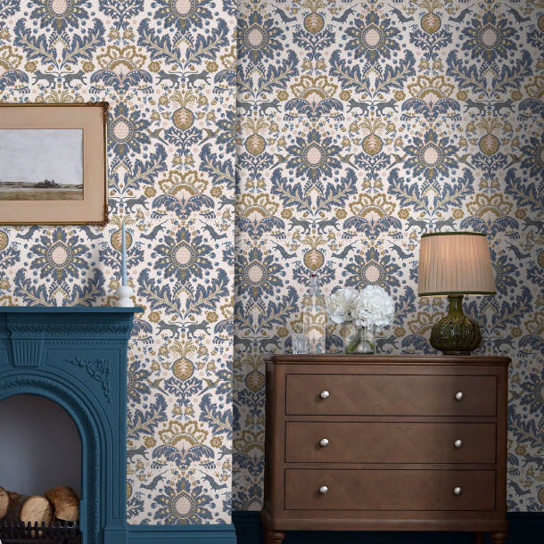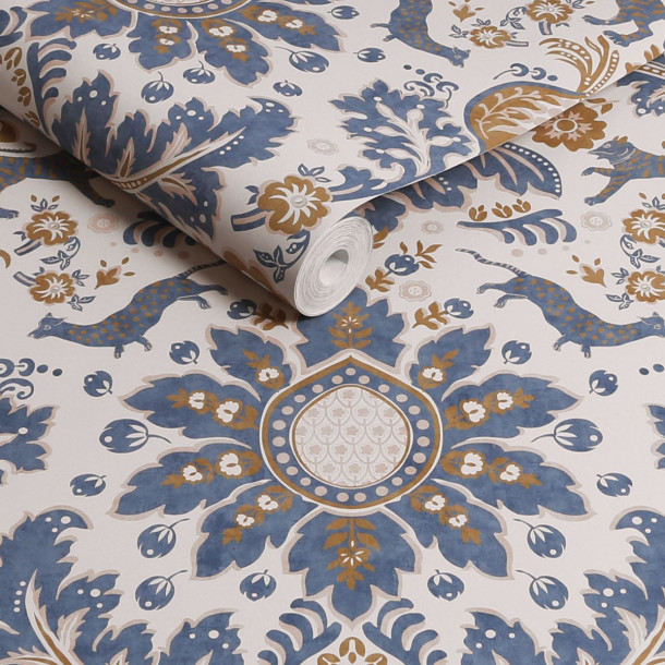 Papel Pintado Animal Damask Crema/Azul/Dorado, Joules