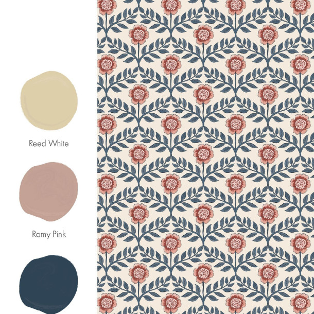 Papel Pintado Stately Floral Crema/Azul/Rojo, Joules