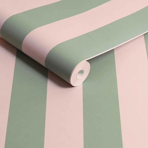Papel Pintado Canopy Stripe Verde Y Rosa Multi, Cath Kidston