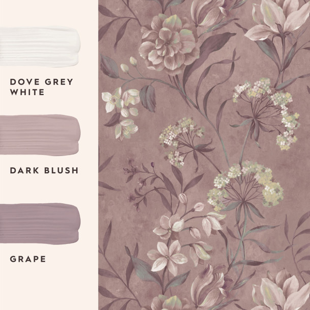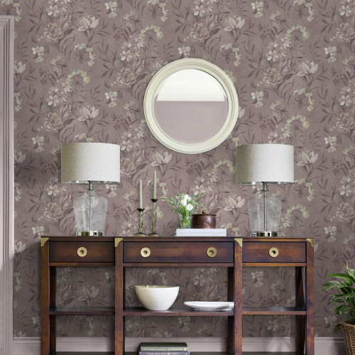 Papel Pintado Blairmore Floral Uva 10 metros, Laura Ashley