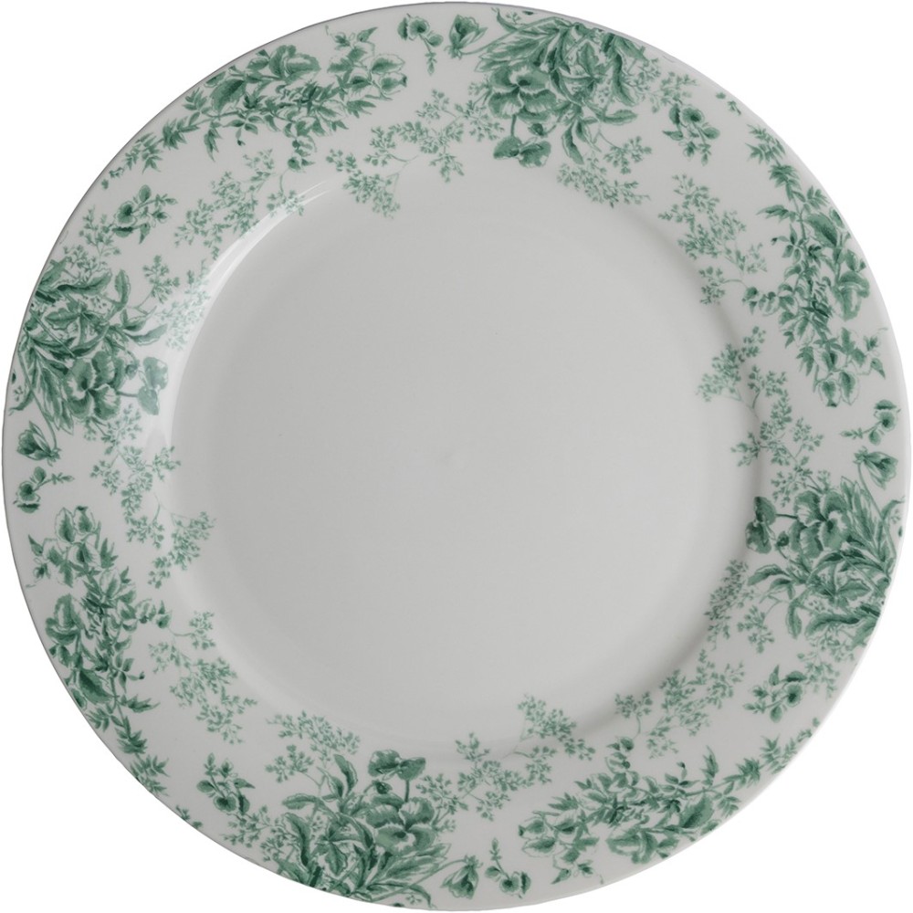 Plato de porcelana de 26 cm de la colección Thurston de Laura Ashley, con delicado estampado floral en verde y blanco. Ideal para dar un toque elegante y natural a tu mesa.