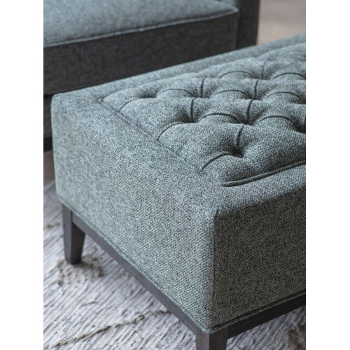 Este taburete botonado en Verde Bosque complementa nuestra popular gama Theodore. Los hilos verdes y grises oscuros de la tela tejida aportan un acabado natural y texturizado, mientras que los botones profundos y los detalles ribeteados añaden carácter. Se apoya sobre un sólido marco de madera marrón oscuro y requiere un montaje sencillo. También disponible en Taupe Oscuro, Marfil y Gris Cálido.
