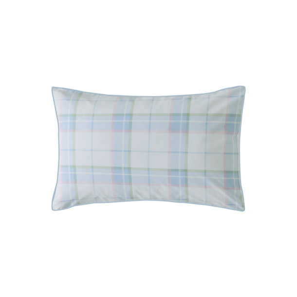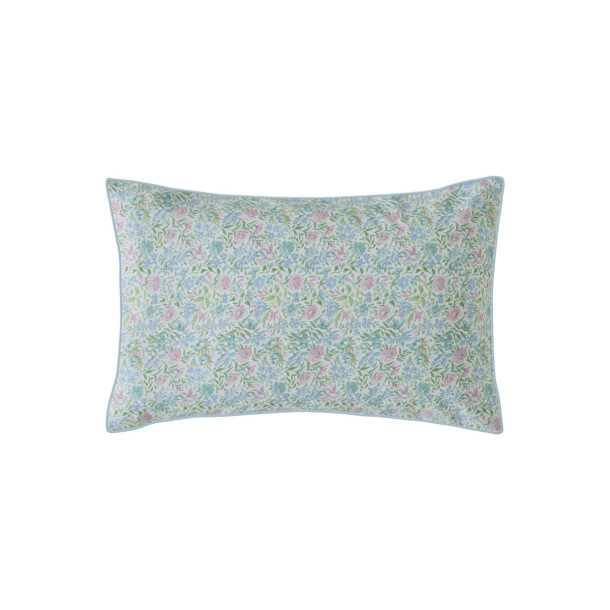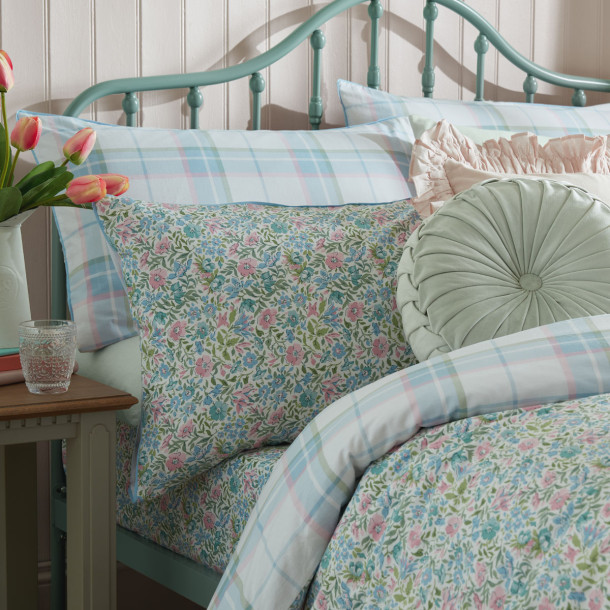Set de Cama Sherston de diseño de flores de color amapolas y fucsias. El estilo gouache se combina con un reverso de cuadros a juego sobre una base de algodón 100 % lavado con un ribete plano azul suave.