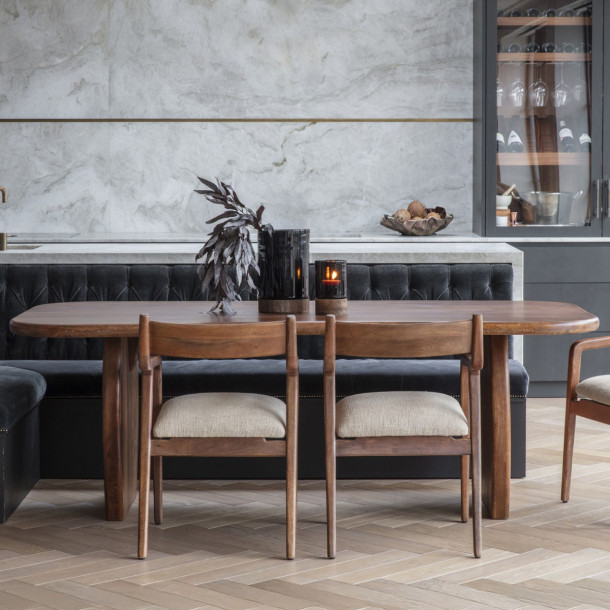 La Silla Tapizada Monterey combina elegancia y funcionalidad con sus únicas patas traseras descentradas. La suave tapicería asegura comodidad y estilo, lo que la convierte en una adición ideal a las mesas de comedor Monterey. Disponible en Beige, Salvia y Capuchino, puedes comprarlas como un conjunto a juego o mezclarlas y combinarlas para adaptarse a tu estilo.