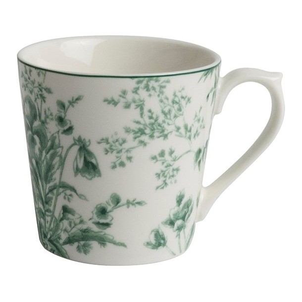 Mini taza de porcelana de 24 cl de la colección Thurston de Laura Ashley. Su diseño floral verde y blanco aporta un aire delicado y acogedor.