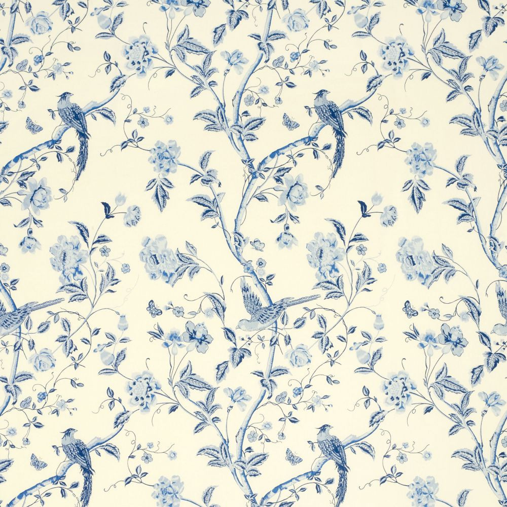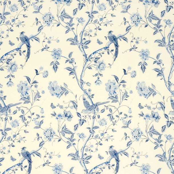 <p>Tela de Flores y hoja en ramas con pájaros exóticos Azul Royal.</p><p>Tejido para Confección a la venta por metros. De Laura Ashley. Summer Palace</p>