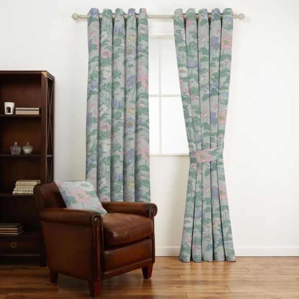 <p>Tela de Flores nenúfares y hojas Morado Iris Pálido.</p><p>Tejido para Confección a la venta por metros. De Laura Ashley. Waterlilies</p>