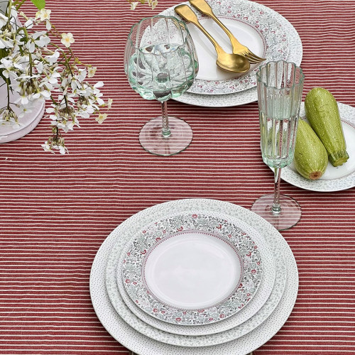 <p>Mantel Daniela rojo a rayas.</p><p>Da un aspecto fresco a la tu hogar con nuestros manteles.</p><p>Completa el conjunto con la colección textil Kitchen Linen.</p>
