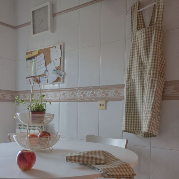 Set de 2 trapos de cocina de algodón estampado con un precioso estampado de cuadros vichy en color verde oliva claro.