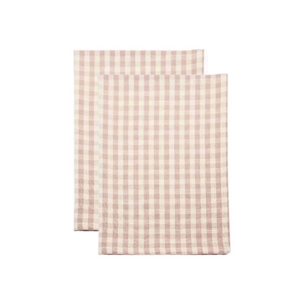 Set de 2 trapos de cocina de algodón estampado con un precioso estampado de cuadros vichy en color rosa claro.