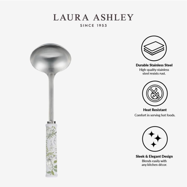 Una Adición con Estilo a la Cocina: La estética clásica de Laura Ashley complementa una variedad de estilos de cocina, ya que el cucharones de cocina se integra perfectamente con su utensilio de cocina existente, creando un espacio cohesivo y visualmente atractivo.